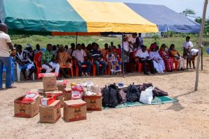 Le lundi 19 septembre 2022, la Fondation a également comblé la population du village de Taki de présents, et dons. A savoir, des vivres et des non vivres et des kits scolaires.