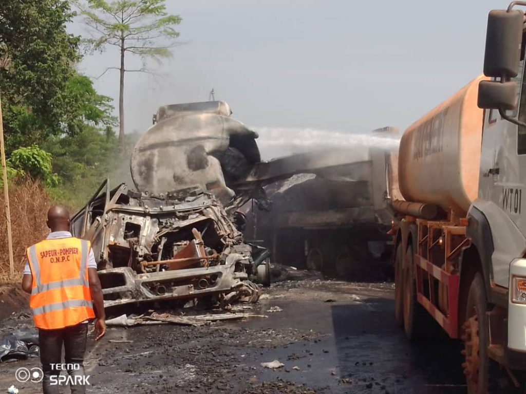 « Nous avons été alertés pour une collision entre deux engins, un camion transportant des produits inflammables et un autre chargé de gravier. À notre arrivée, nous avons tenté de maîtriser le feu. Après l’intervention, nous avons malheureusement constaté la présence de deux corps calcinés et d’une victime blessée, qui a été évacuée », a déclaré le lieutenant Coulibaly, commandant adjoint des sapeurs-pompiers de Zoukougbeu.