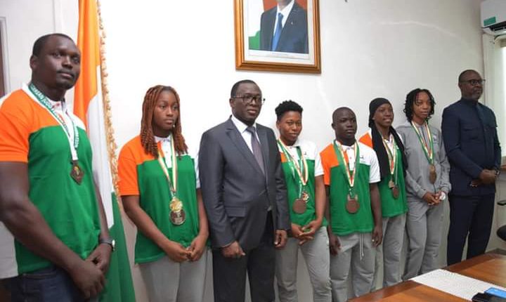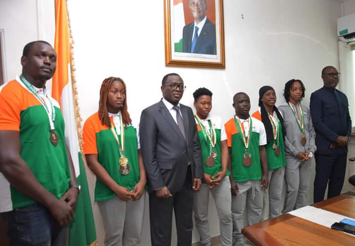 Le Ministre des Sports, Paulin Claude DANHO a reçu en audiences les athlètes ivoiriens qui se sont très bien illustrés lors de compétitions internationales durant le premier semestre de l’année en cours. Cette rencontre s’inscrit dans le cadre de la reconnaissance de la Nation à ses vaillants ambassadeurs.