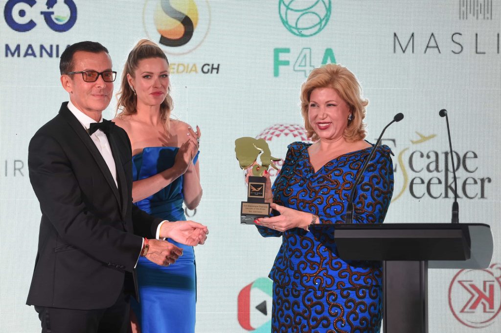 Ce Prix, selon les organisateurs, récompense l’engagement de longue date de Madame Dominique Ouattara en faveur des Arts et de la Culture, de l’alimentation et du développement durable.