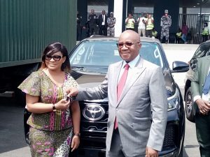 Remise de véhicule par le ministre Sansan Kambilé à Madame Appa Brigitte épouse Lepry, Présidente du Tribunal de première instance
