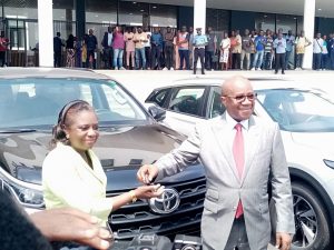Remise de véhicule par le ministre Sansan Kambilé à Madame Essienne Josiane, Procureure près le Tribunal de première instance de Bingerville