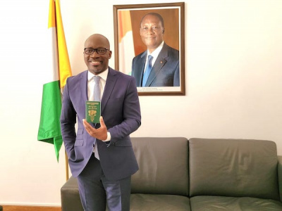 Remise du passeport de Blé Goudé/ Didier Brou (Président du FNDR) souhaite « un bon retour à Charles Blé Goudé sur sa terre natale «