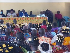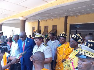Me BLESSY et le préfet de Béoumi entourés par des chefs traditionnels