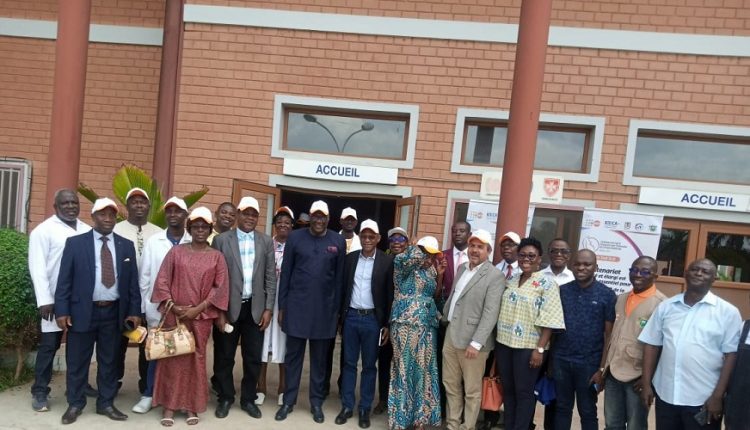 Le Directeur général de la Santé, Mamadou Samba, dans les locaux de l’hôpital Saint Jean Baptiste de Bodo dans la région de l’Agneby Tiassa en compagnie de quelques membres du personnel soignant.