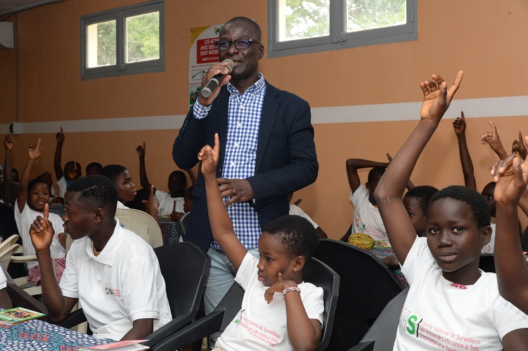 Pour sa part le Consultant National en charge de la question du Travail des Enfants, Amani Konan Michel a expliqué aux tout-petits la différence entre les pires formes de travail des enfants et le travail socialisant.